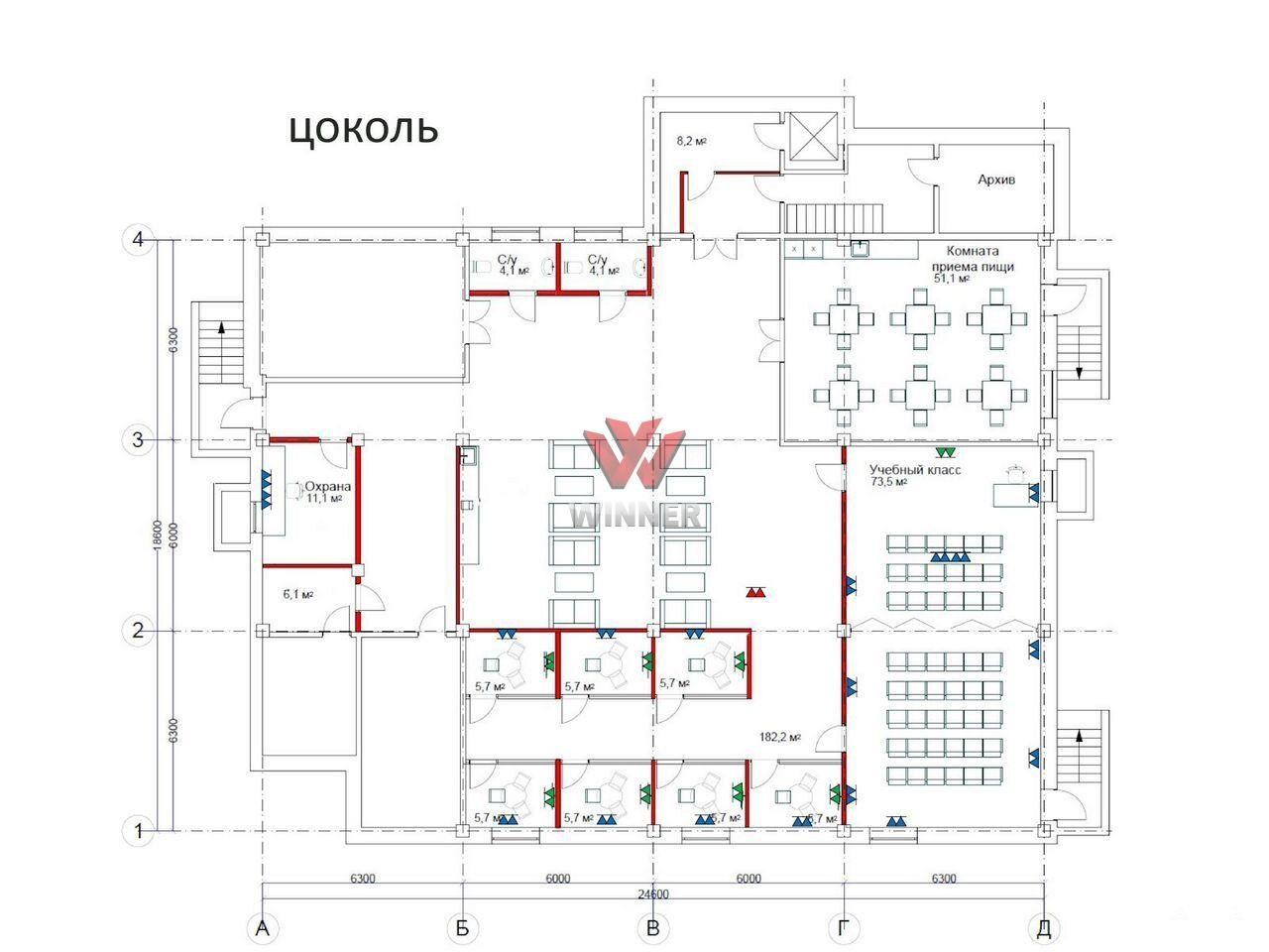Есть серверная, скс разводка, сплит (фанкойл на крыше) система кондиционирования.
