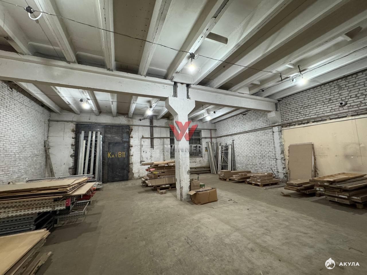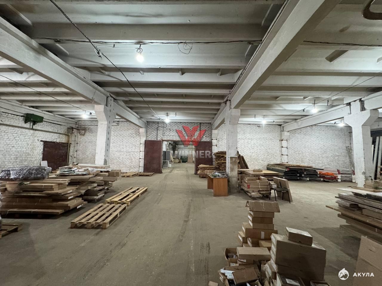 Склад разделён воротами на 2 основных складских блока, подъезд к складу с двух сторон.