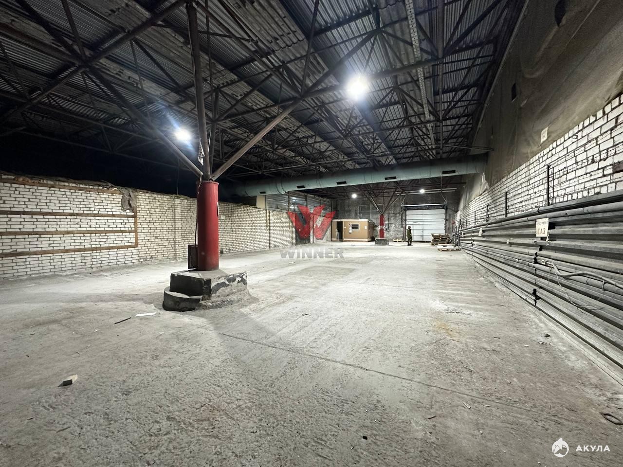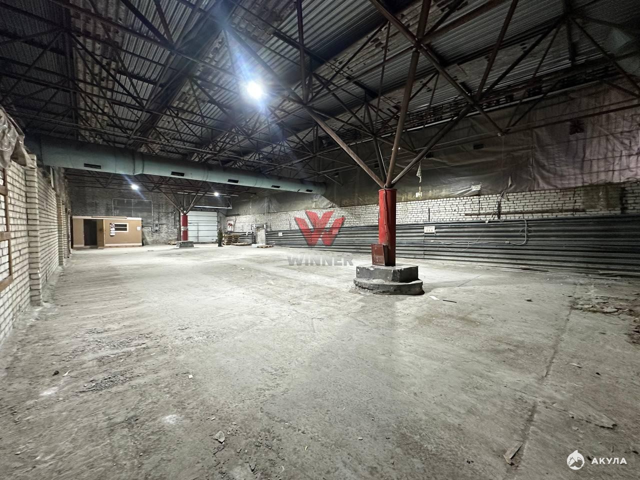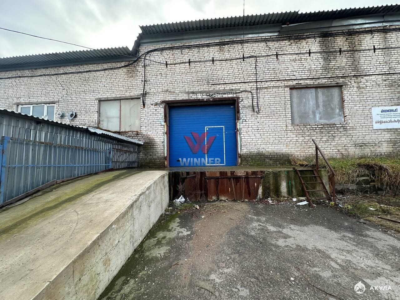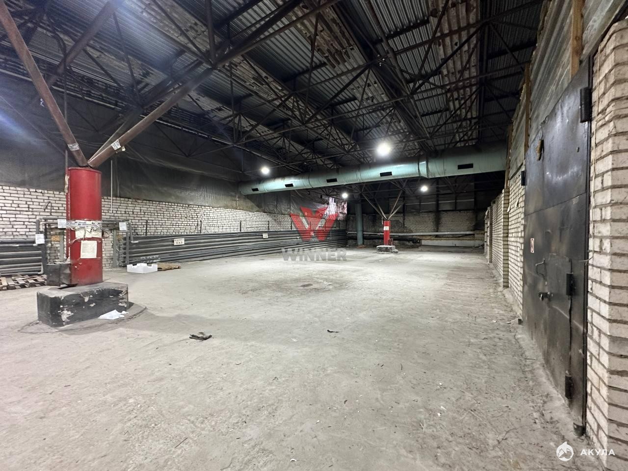Складское помещение с рампой 1.2м, высота потолков 4 метра до ферм, размер ворот 3х3, есть бытовка, электричество 30кВт, охраняемая территория, подъезд еврофуры.