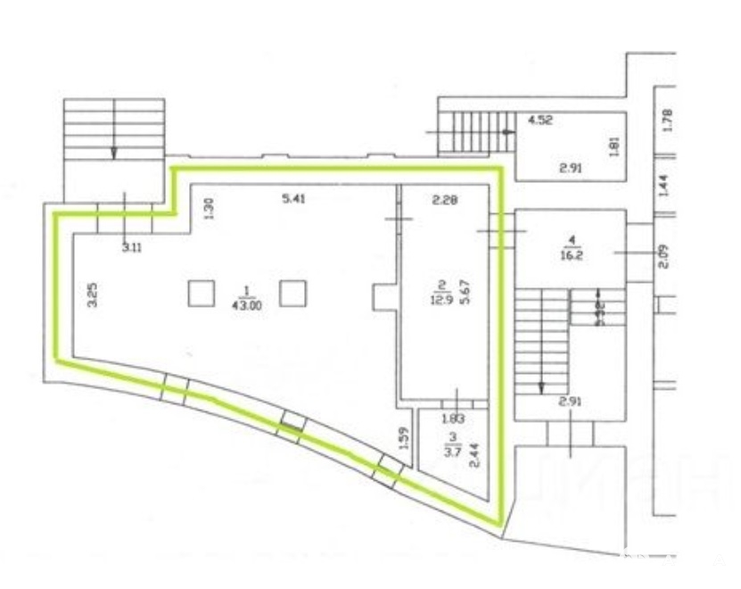 Первый этаж. Отдельный вход с фасада здания.