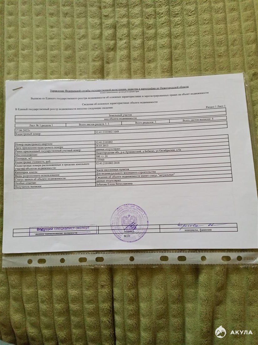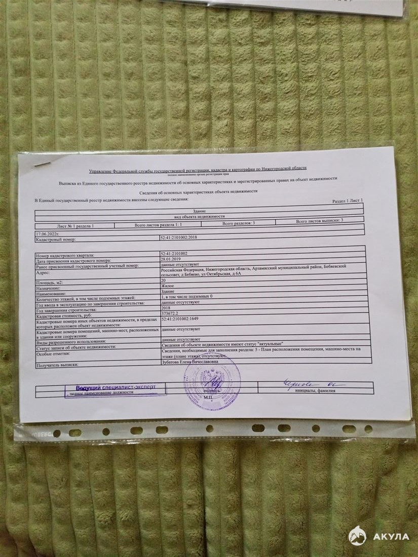 ID в ИМЛС: 19638088 Продам Участок площадью 5 сот. ( г Арзамас, деревня Бебяево ул Октябрьская 6А) (Земли населенных пунктов / Индивидуальное жилищное строительство). Живописный участок, напротив Теша. Все коммуникации рядом, у соседей. На участке есть домик с2018 года, можно снести а можно пристрой.