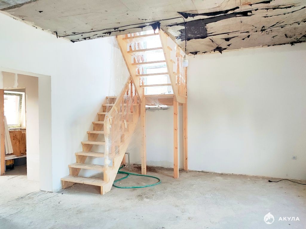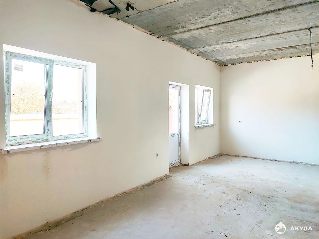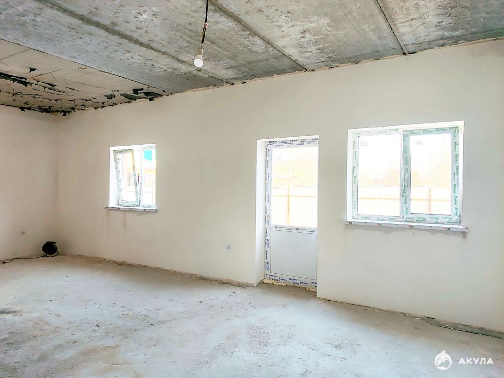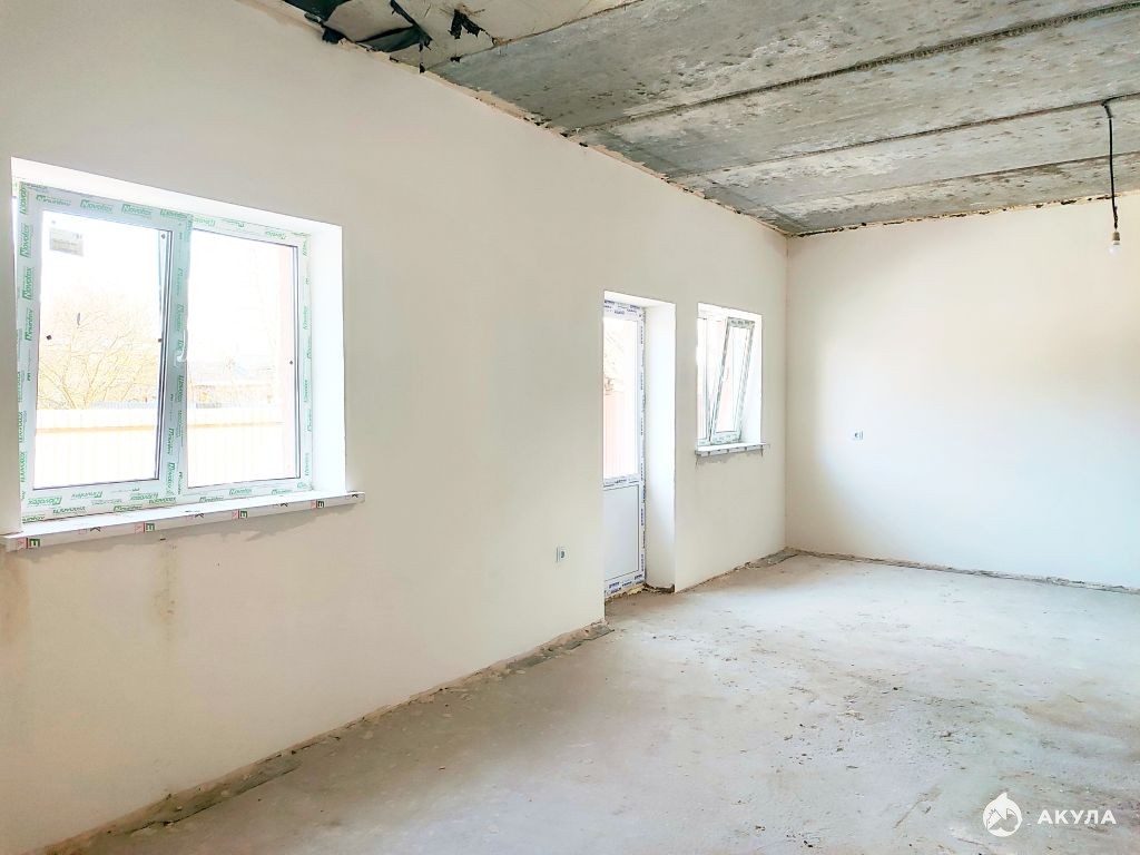 1-й этаж: просторная гостиная с выходом на участок (место под будущую веранду), оборудованная кухня, санузел.