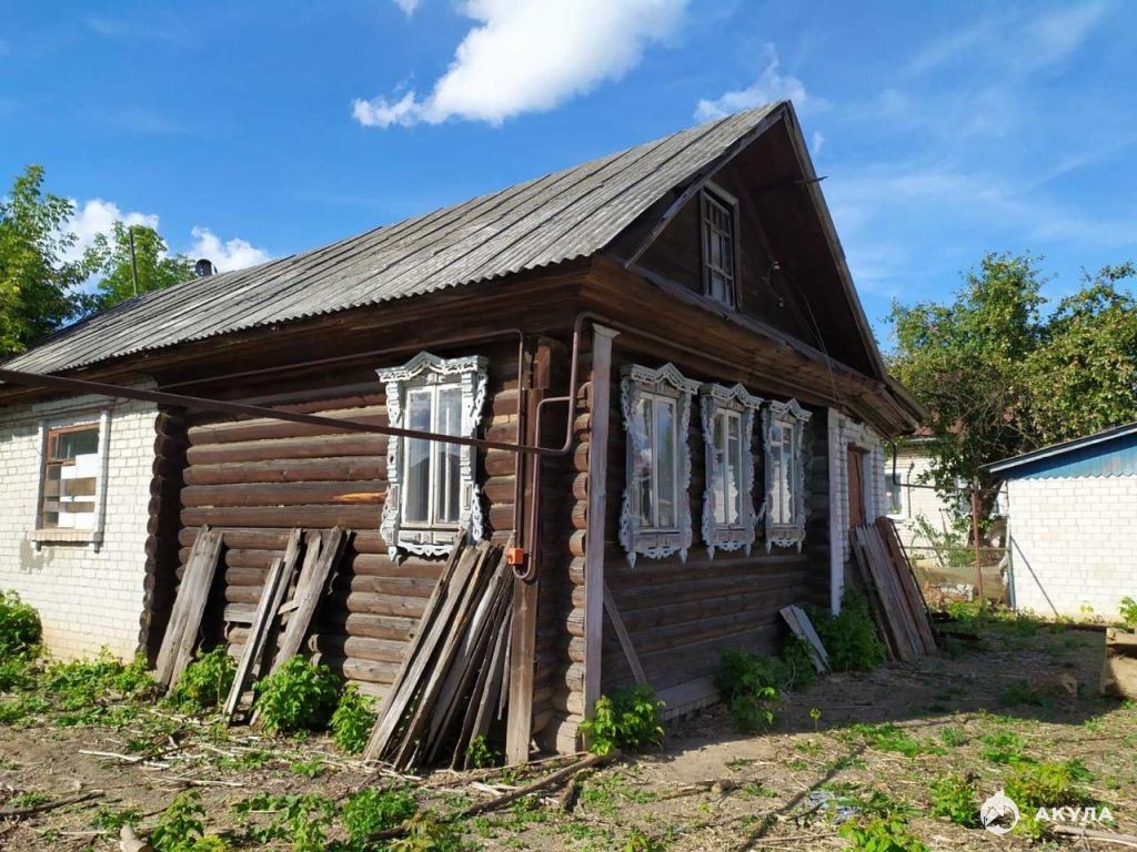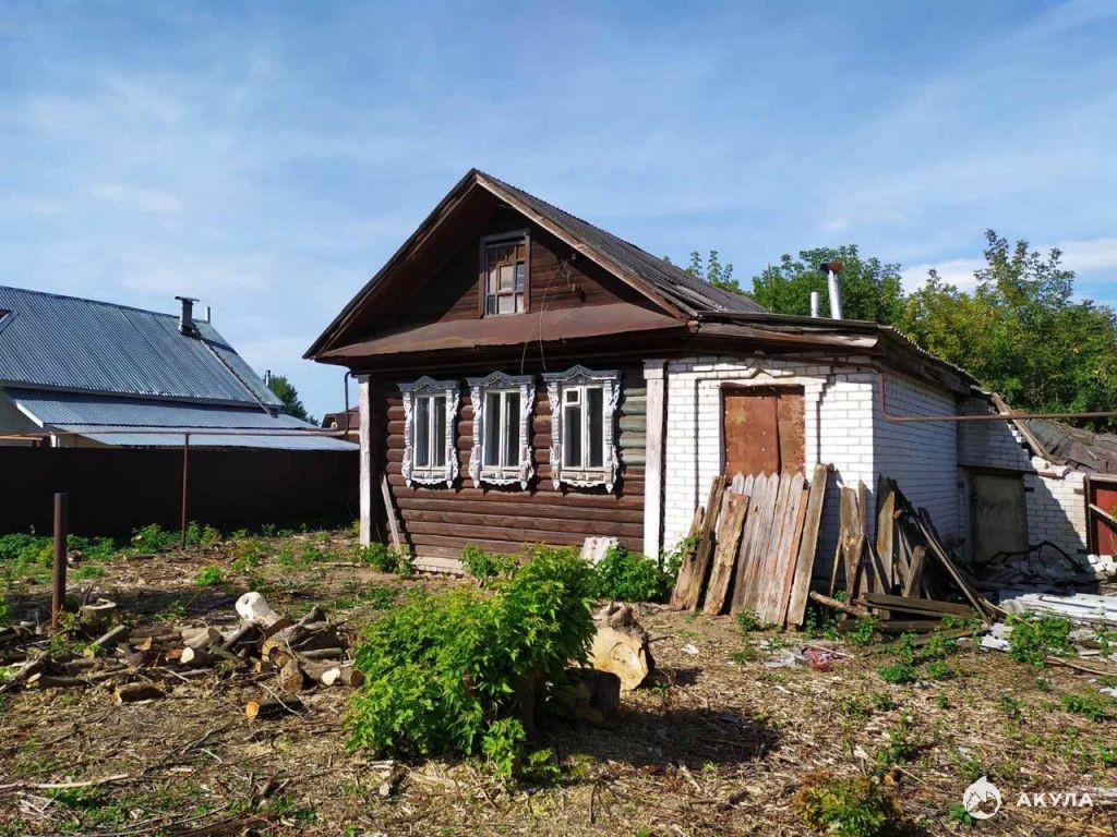 Дом деревянный, с кирпичным пристроем. Фундамент ленточный, на крыше шифер. Общая площадь 70 кв.м. Есть две комнаты, кухня, место под санузел. Газ в доме, АГВ, вода скважина. Земельный участок 11 соток.