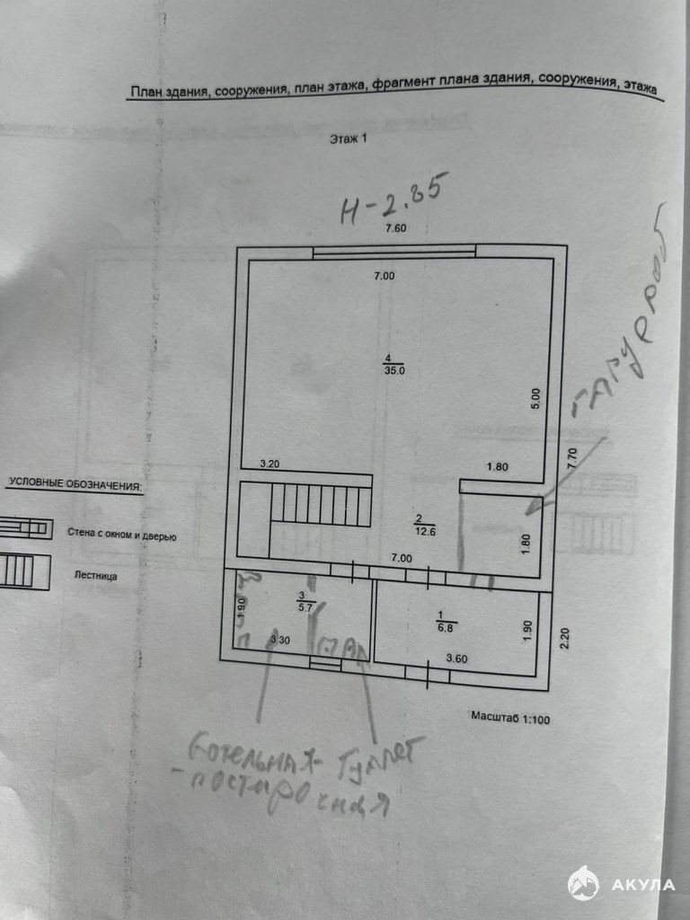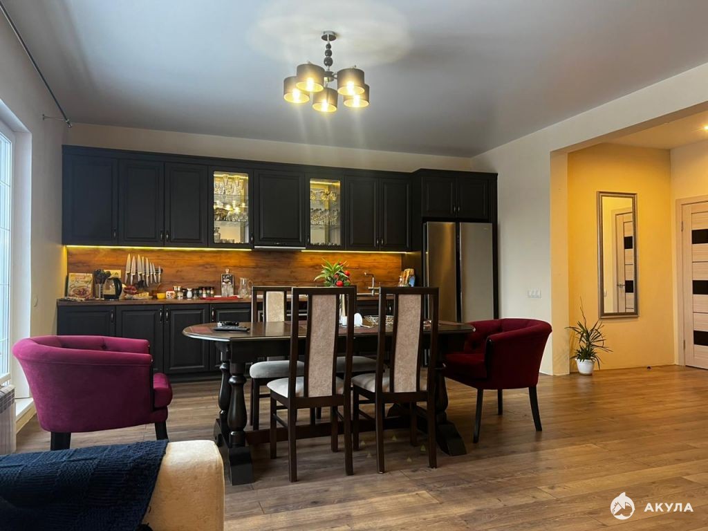 - на 1 м этаже: кухня-гостиная 35 кв.м; теплые полы, гардеробная 3, 6 кв.м.; тамбур, котельная, санузел.