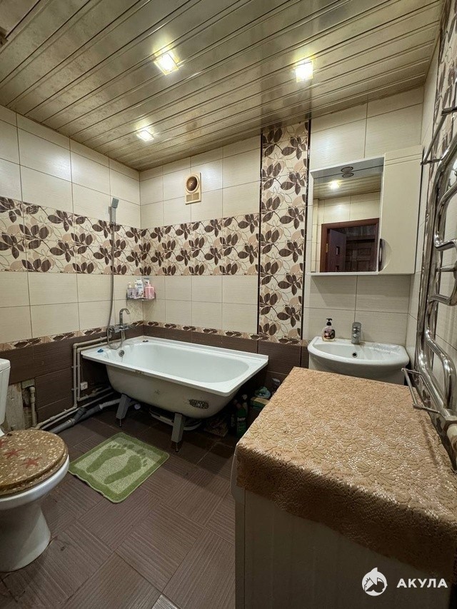 совмещённый просторный санузел (кафель на стенах и полу);