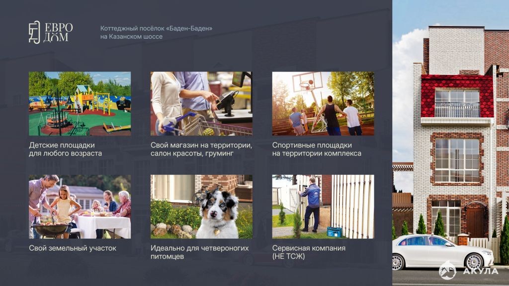 - закрытая благоустроенная и безопасная территория для семьи и домашних животных;