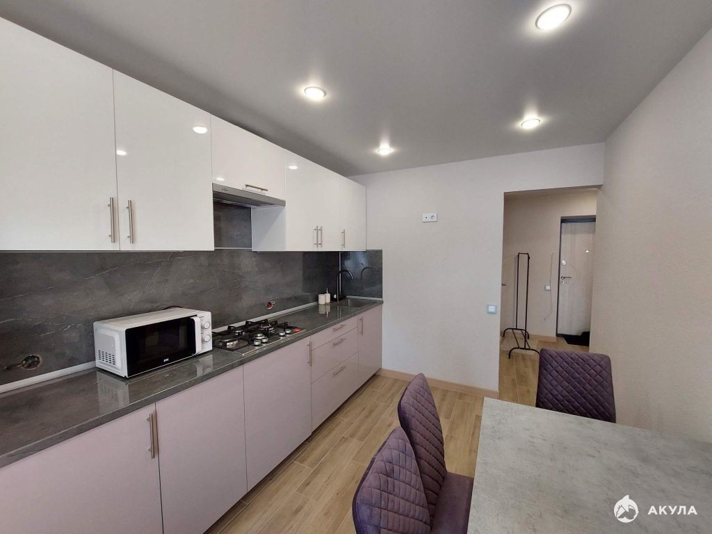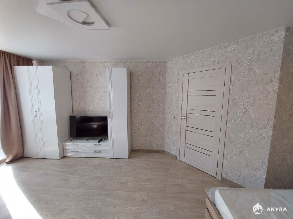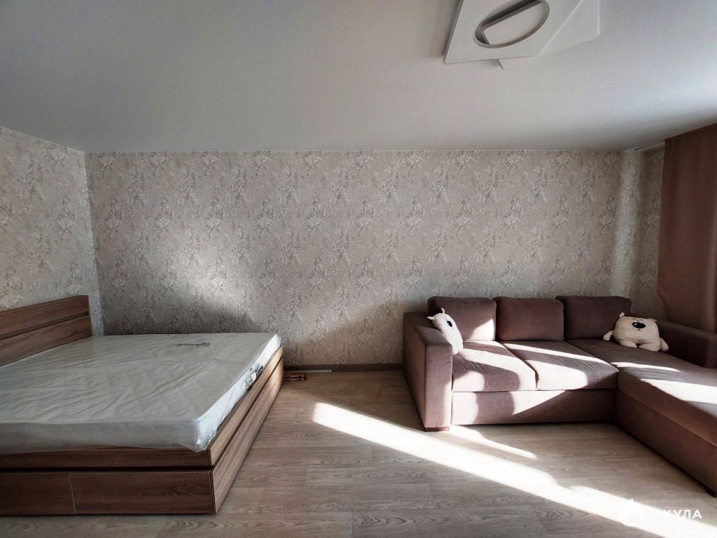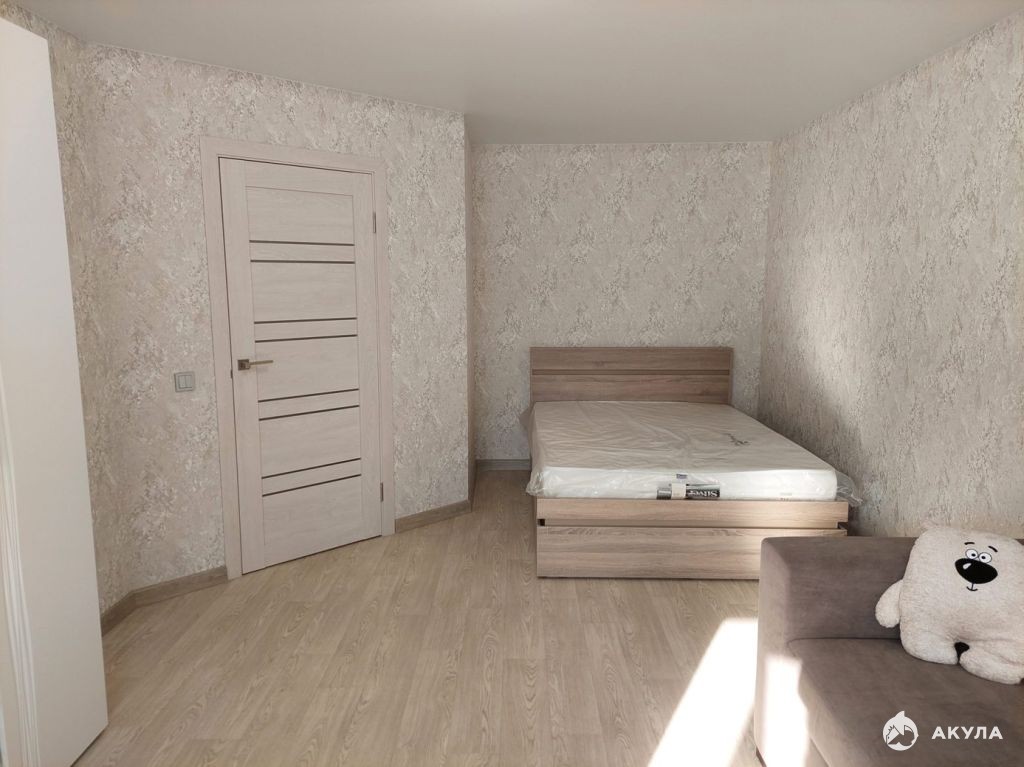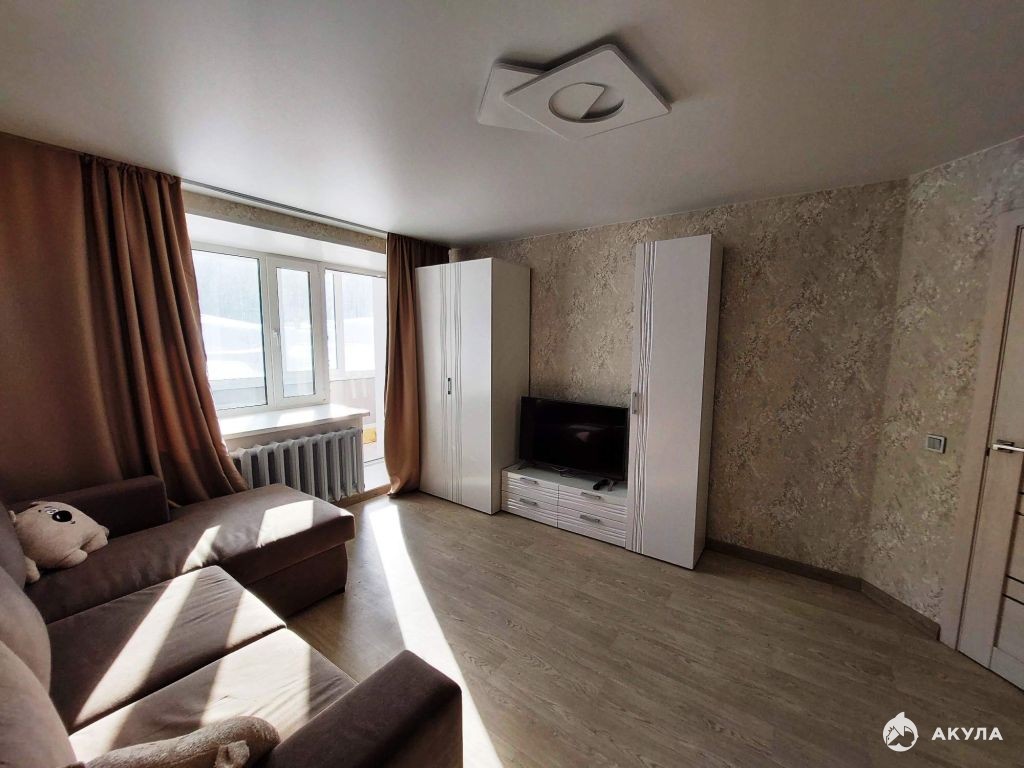Во всей квартире выровнены стены и пол, натяжной потолок, остекление окон и лоджии ПВХ. В комнате на полу линолеум, в кухне и прихожей - плитка. Лоджия большая, обшита пластиком, на полу линолеум. Батареи чугунные. Установлены новые межкомнатные и входная двери.