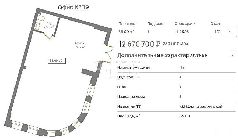 Предлагаем вашему вниманию рассмотреть прекрасный офис в элитном жилом комплексе КМ Дом на Барминской. Сдача дома запланирована на 3 квартал 2026 года, но строительство идет с опережением!