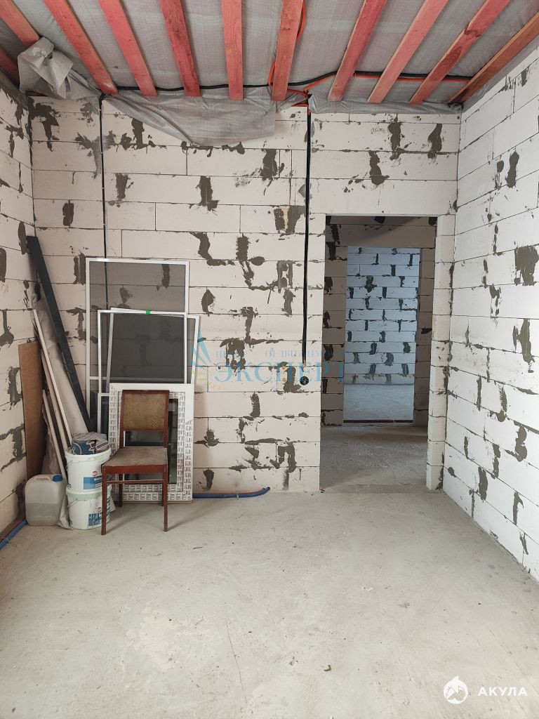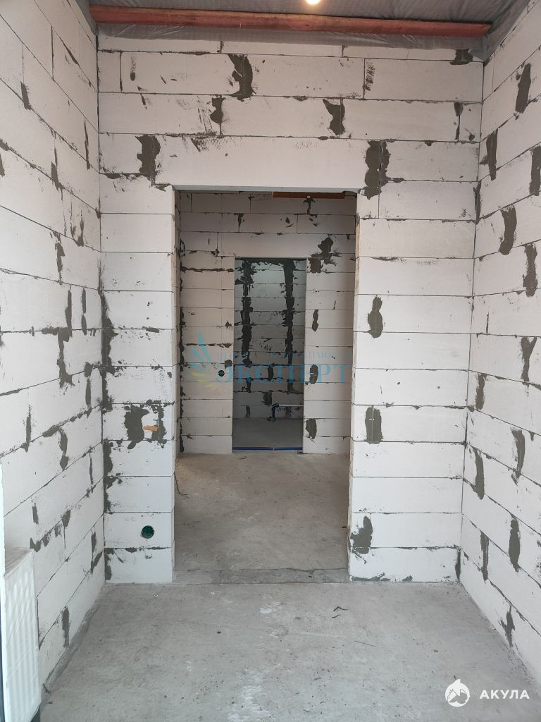 Дом блочный из газосиликата, фасад-штукатурка короед, перекрытия - деревянные, фундамент-монолитная плита, крыша четырехскатная утепленная 200мм кровельный материал- металлочерепица, своя скважина, канализация-септик. В доме проведены следующие работы: электрическая проводка, система отопления, канализация и водоснабжение, установлены окна, радиаторы, станция водоснабжения. Внутренняя отделка не сделана. Все коммуникации в доме подключены. Электричество-15 кВт. отопление и горячая вода запитаны от электричества, система отопления заполнена незамерзающим теплоносителем.