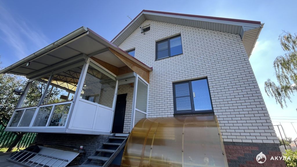 По всему дому установлены энергосберегающие металлопластиковые окна. Рамы со стороны улицы выполнены из цветного пластика (не плёнка!). Крыша сделана из импортной металлочерепицы, подшита качественным импортным сайдингом.