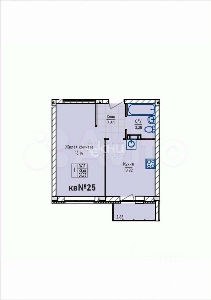 В продаже квартира однокомнатная 34, 73 м в Новинках! Дом сдан 1 кв. 2026г.