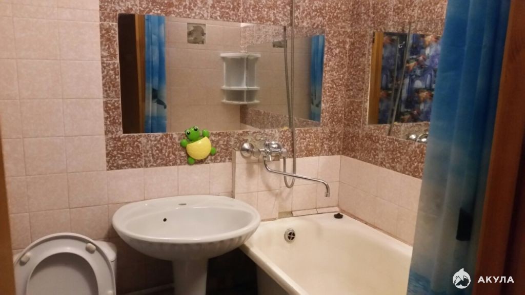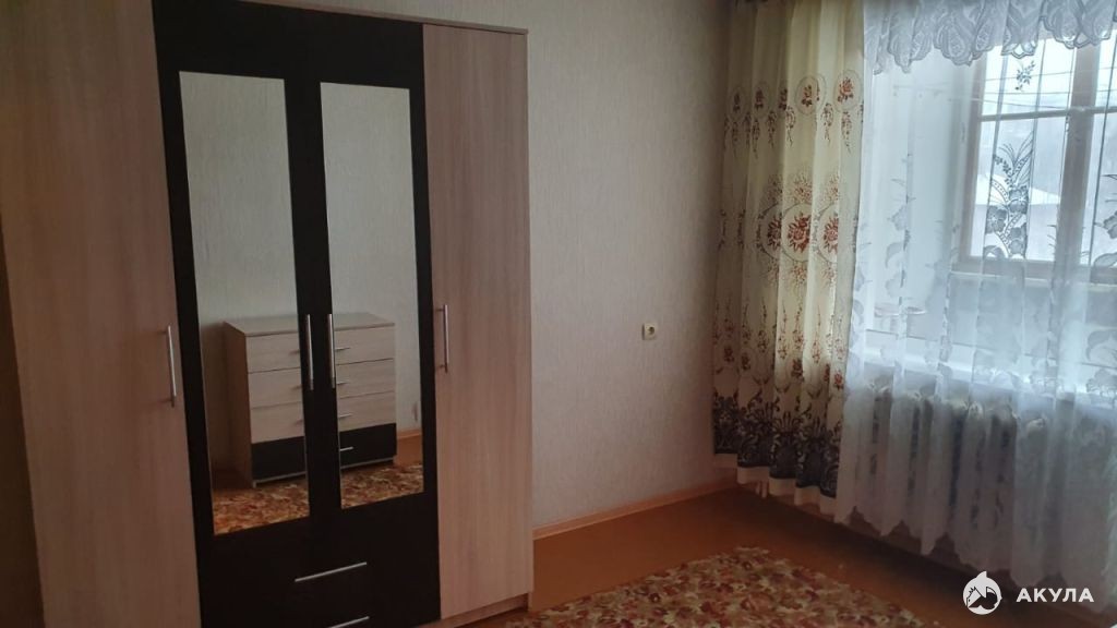 Семнадцатиметровая комната с выходом на лоджию, санузел совмещенный в плитке, есть кладовка, пластиковые окна, металлическая дверь.
