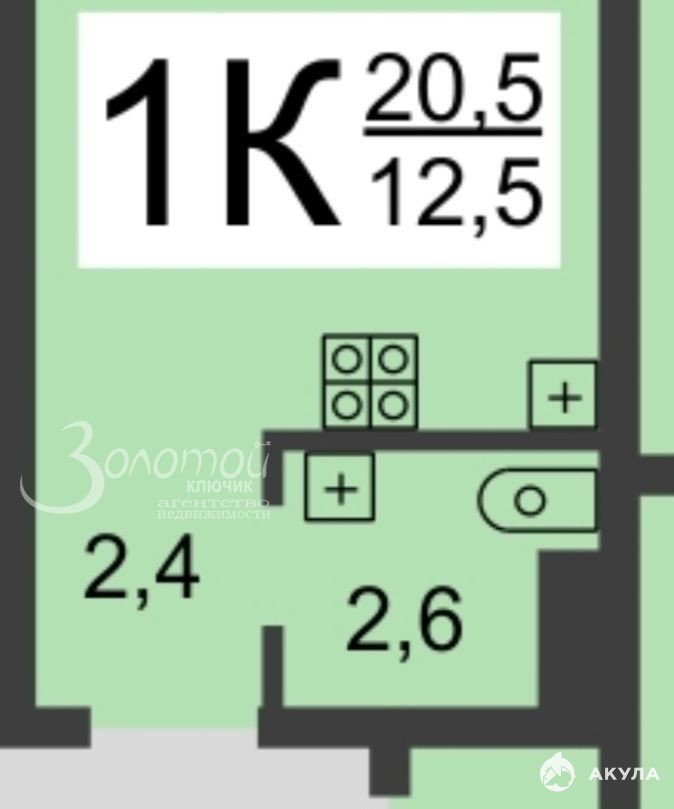 - Площадь: 17, 3 m