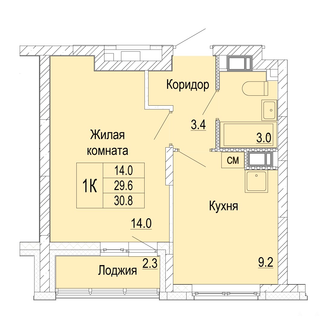 - 14 м²