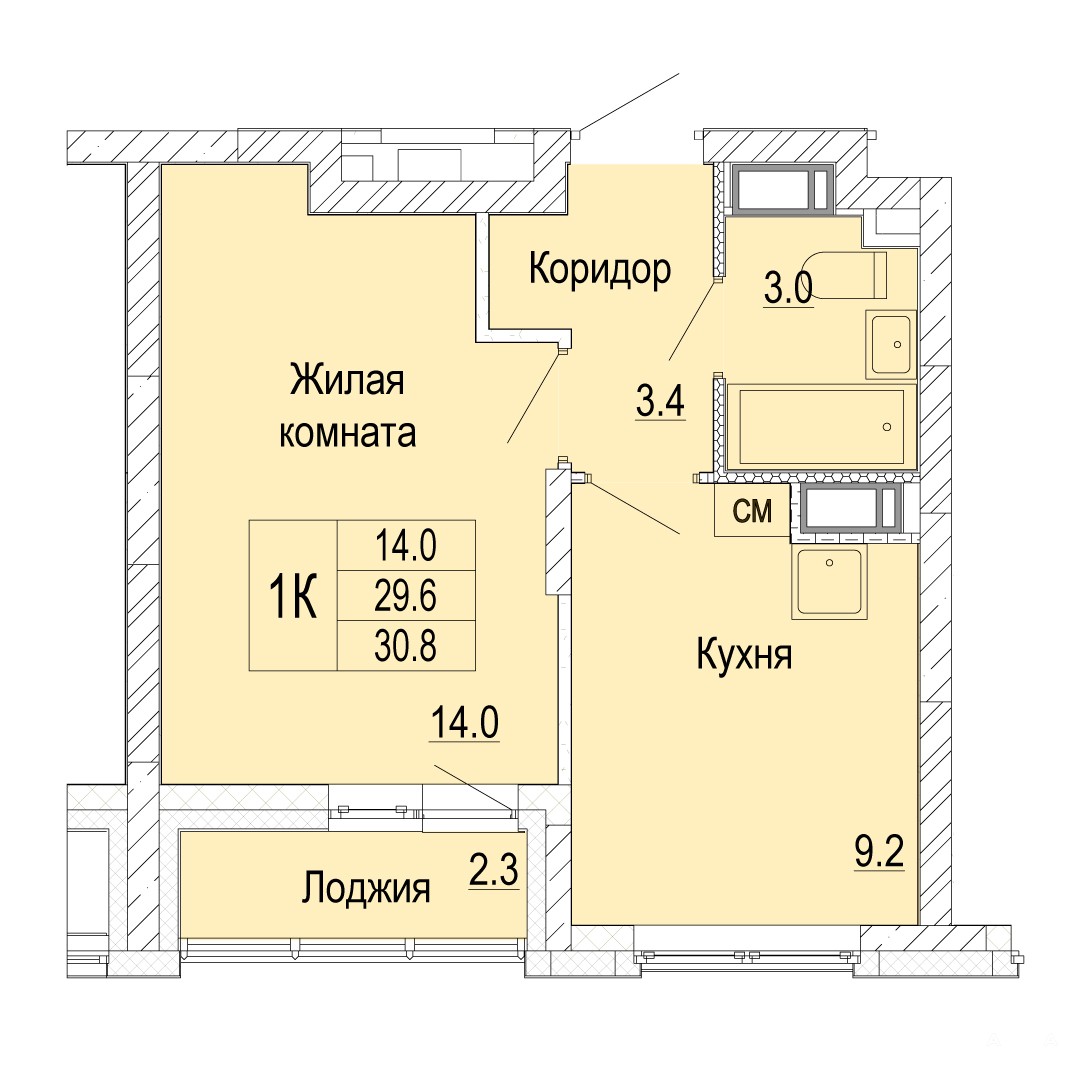 - 14 м²