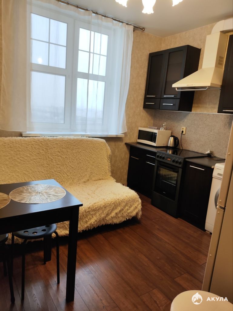 Квартира находится на 11 этаже 16 этажного монолитного дома. Общей площадью 38 кв.м, из них жилая 18, 3 + кухня 10.2 кв.м.