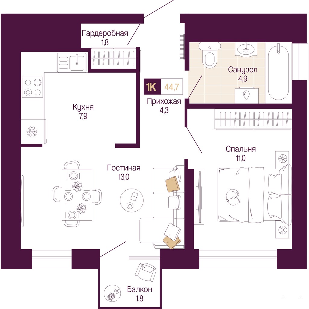 - 20.9 м²