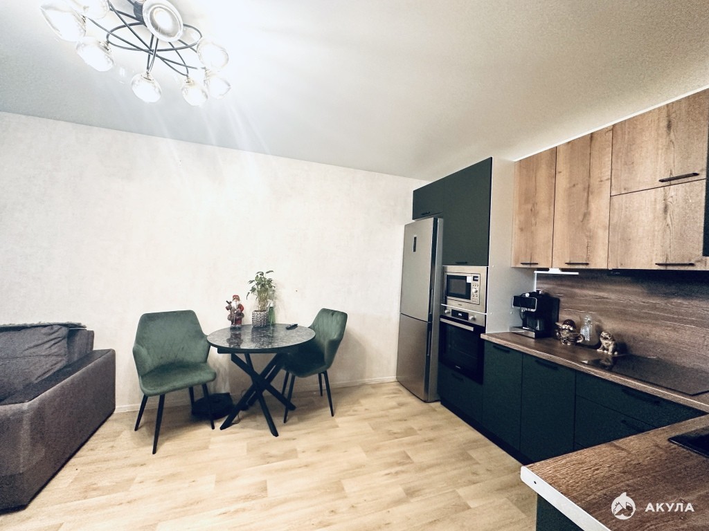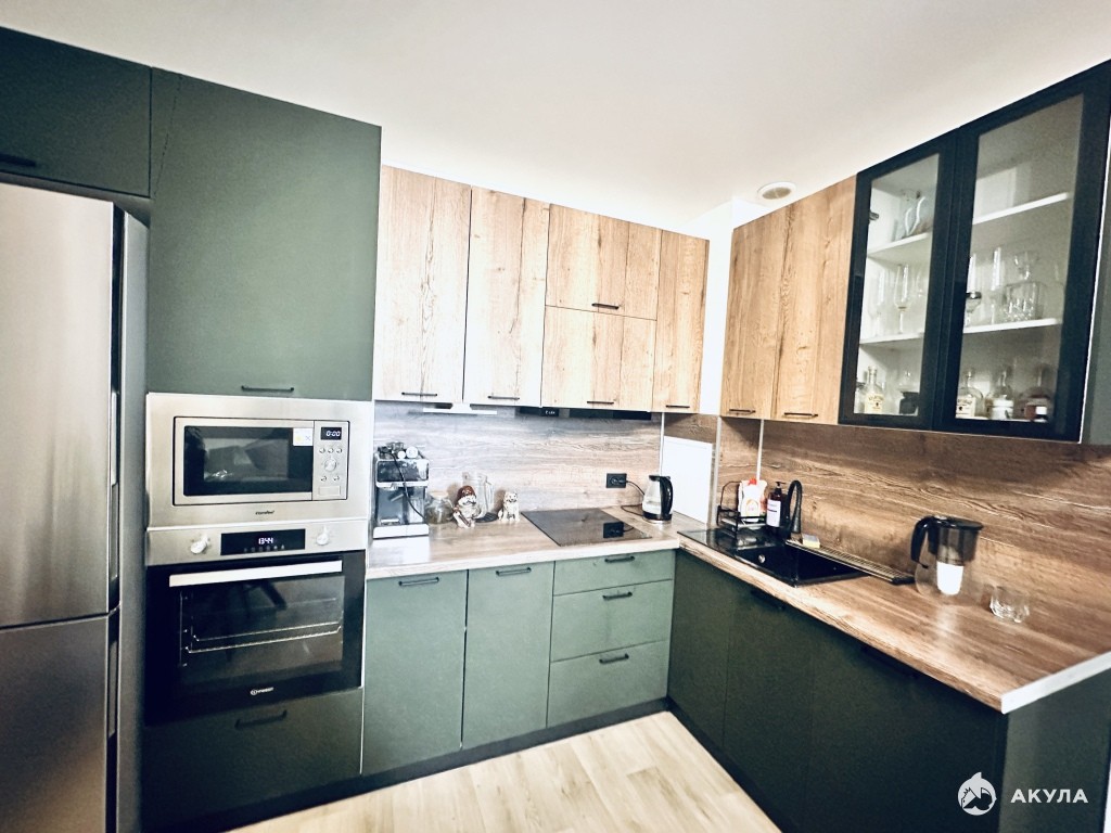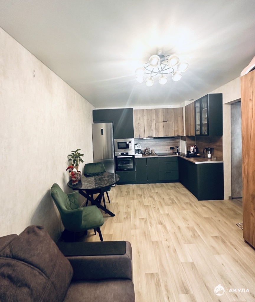 Квартира с очень функциональной планировкой полностью готова как к проживанию, так и для сдачи в аренду, остается все что видите на фото, мебель в гостиной и комнате, встроенная техника, холодильник, стиральная машина с сушкой, кондиционер. Также дополнительно есть барная стойка с барными стульями, по желанию можно установить.
