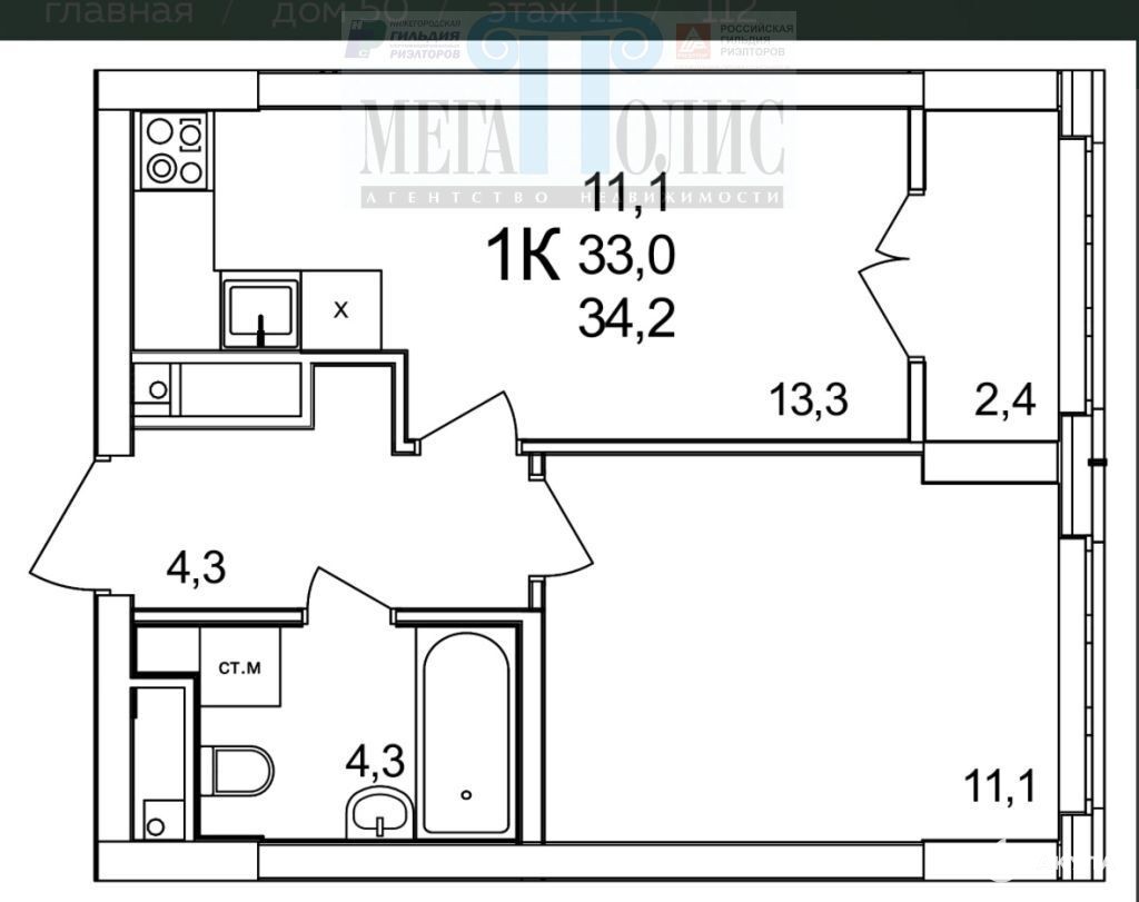 - 34 м²