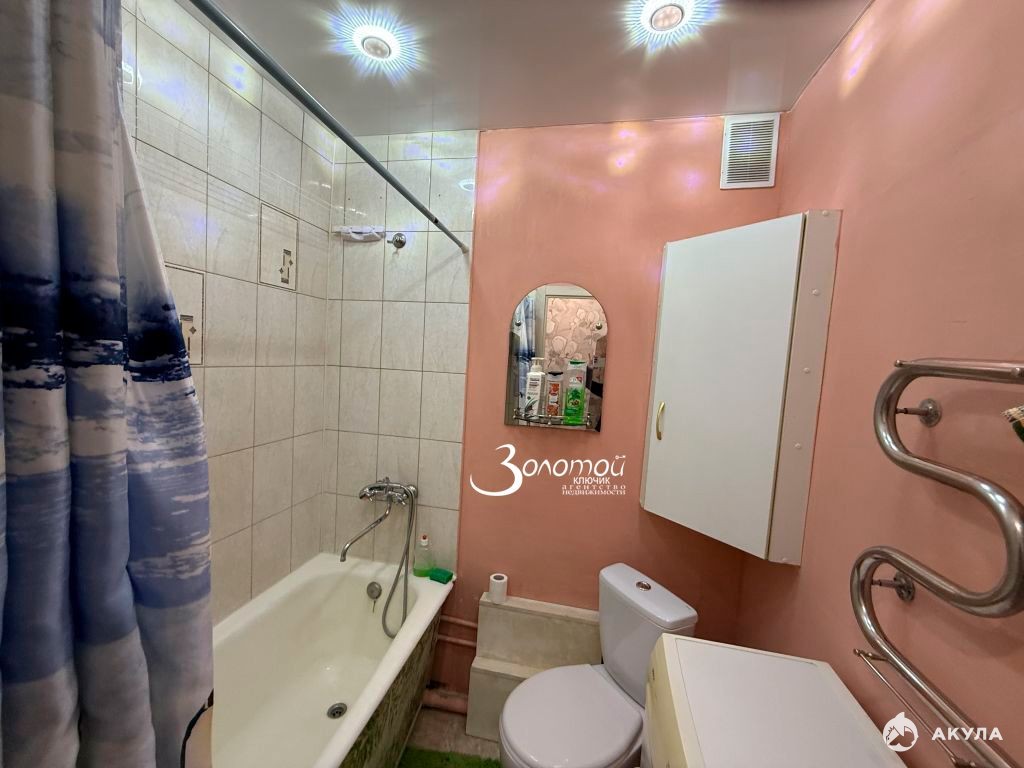 С/уз. совмещен, стены выложены современной плиткой, новая белая сантехника, импортные смесители, заменены все трубы, установлены счетчики.