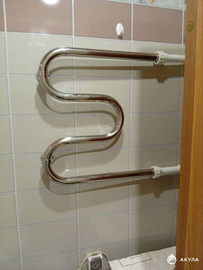 Санузел в кафеле. Полотенцесушитель меняли. Трубы новые.