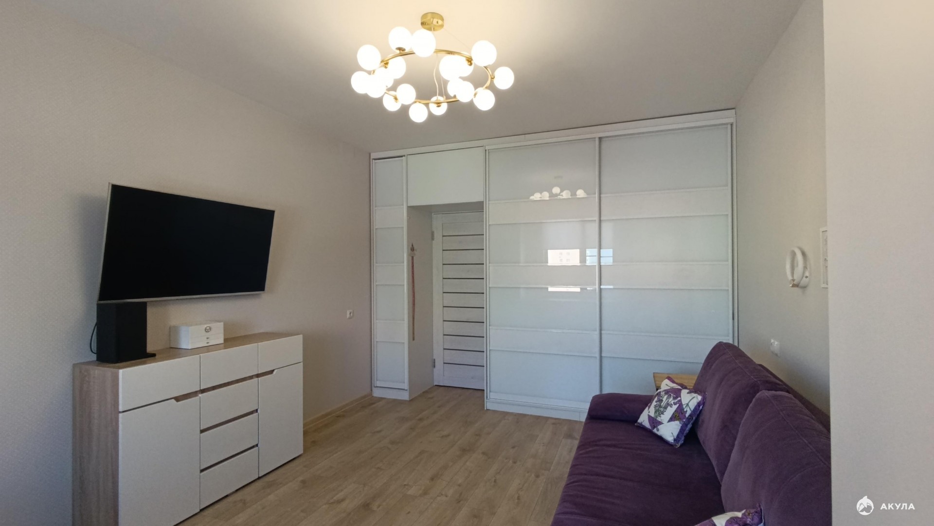В квартире остаются кухонный гарнитур, встроенная техника: варочная поверхность, духовой шкаф, вытяжка, ст.машина. Из мебели: шкаф в прихожей, белая глянцевая стенка в детской, частично приборы освещения.