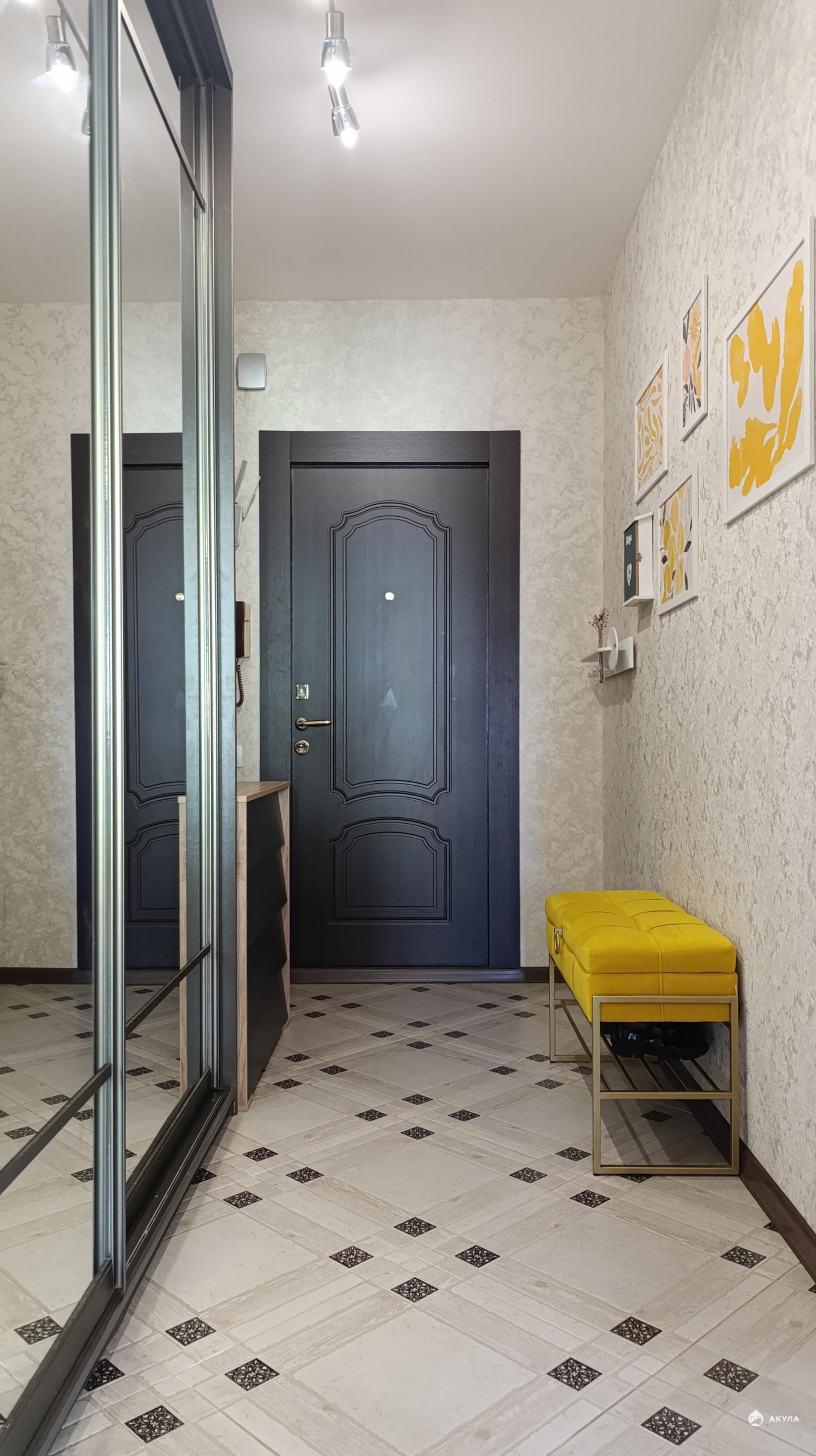 Холл подъезда просторный, грузопассажирский лифт, есть видеонаблюдение, рядом с домом много парковочных мест на открытой стоянке, либо на многоуровневом крытом паркинге.