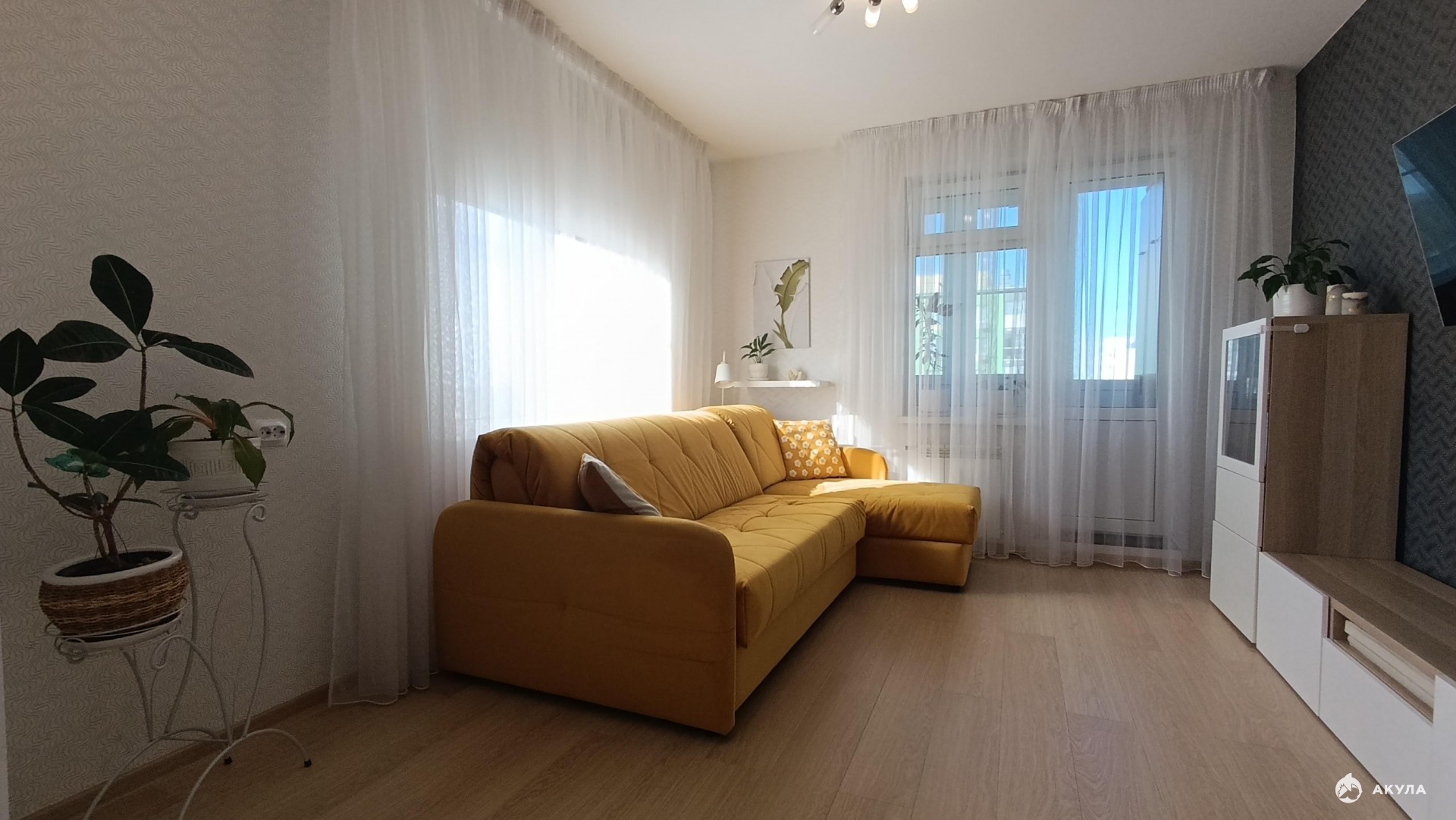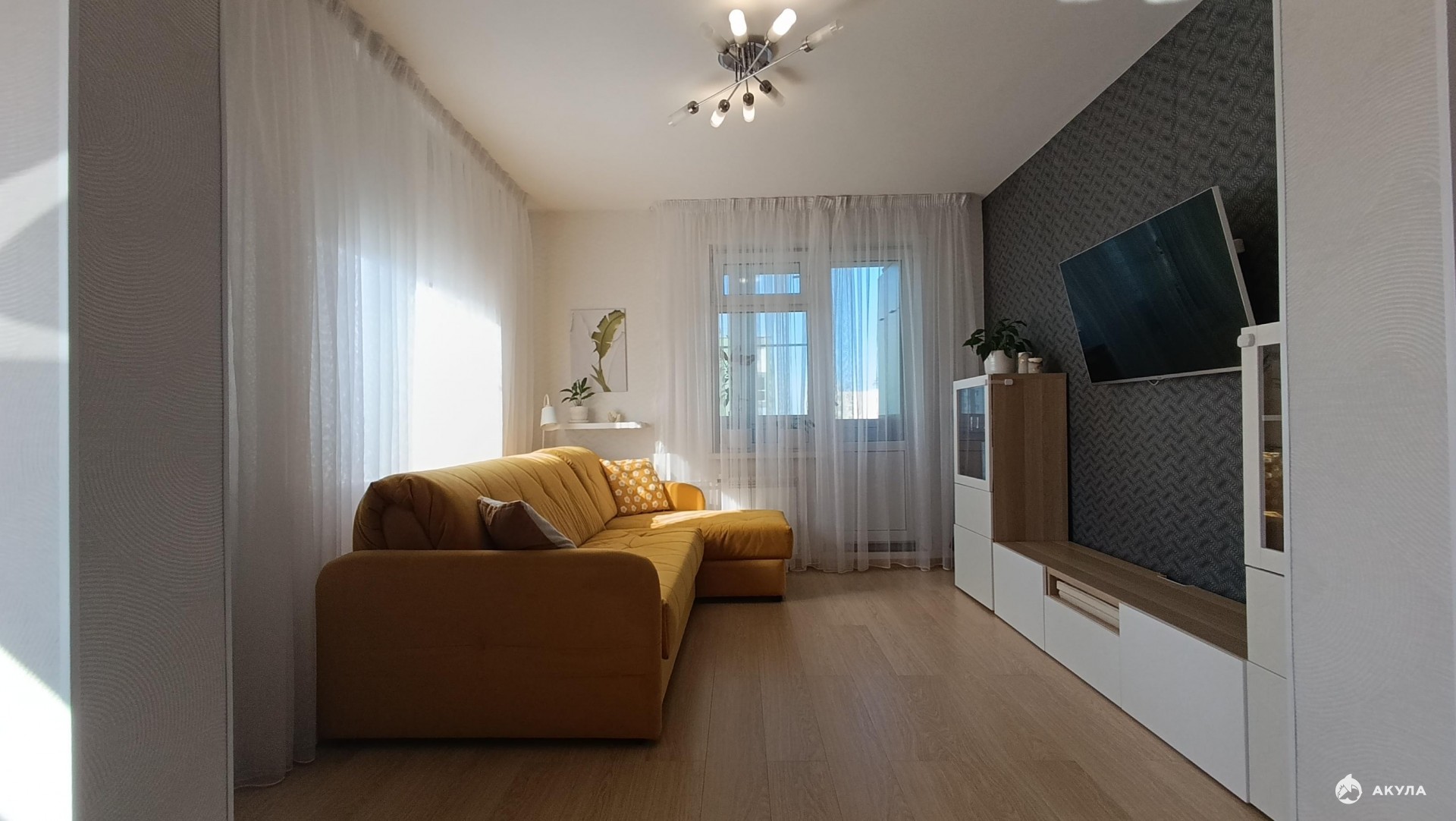 Обои светлых, спокойных тонов, напольное покрытие в комнатах – ламинат; кухне, прихожей, лоджии – керамогранит, хорошие входная и межкомнатные двери, новые радиаторы отопления, рамы окон и лоджии заменены на многокамерный профиль REHAU c дополнительной шумо- и светоизоляцией.