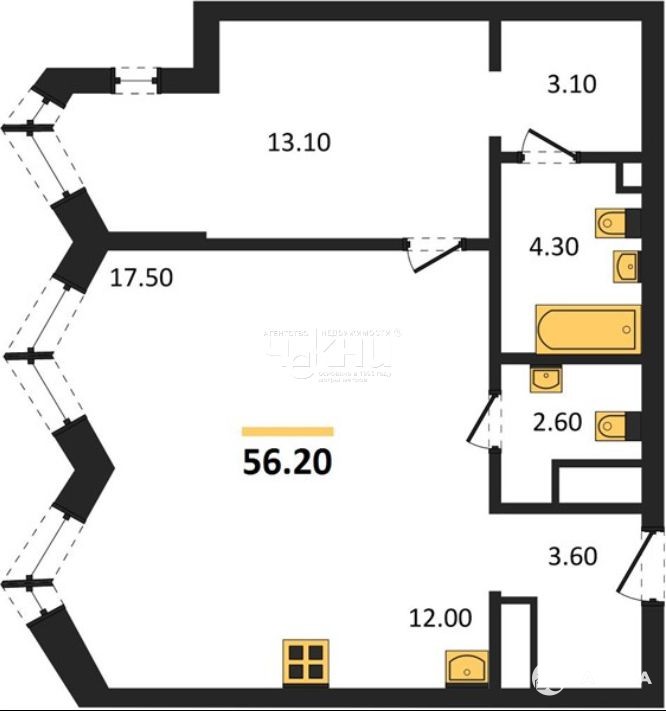 Площадь 56.2 м + кухня 12 м простор для семьи.