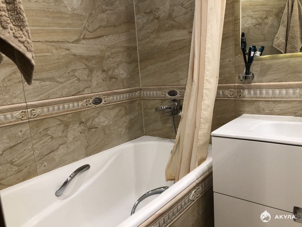 Из мебели остаётся кухонный гарнитур с газовой варочный панелью, вытяжка, шкаф-купе в прихожей и тумбочка, шкаф в комнате и стол, тумбочка в ванной.