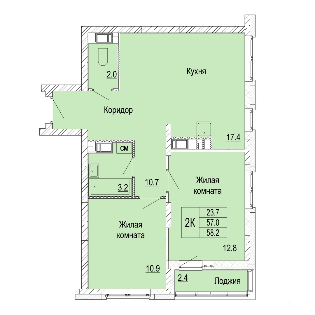 - 58 м²