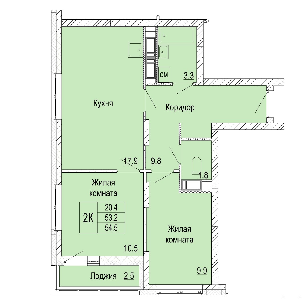 - 17.9 м²