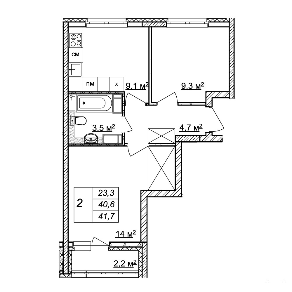 - 23.3 м²