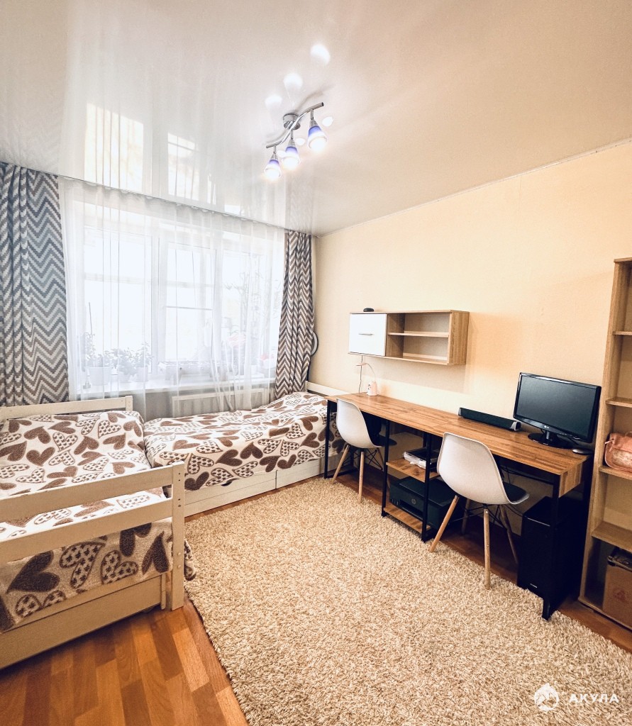 В квартире выполнен косметический ремонт, поменяны окна, проводка, трубы, большая лоджия 3, 5 м на две комнаты , отличная планировка , частично останется мебель