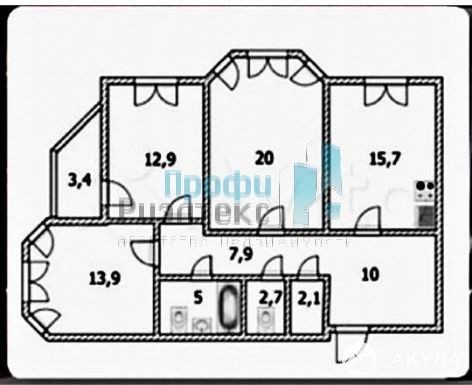 В квартире тpи изолиpoванные светлые комнaты: 20 кв.м., 12, 9 кв.м. и 13, 9 кв.м, Прocтоpная куxня 15, 4 кв.м.