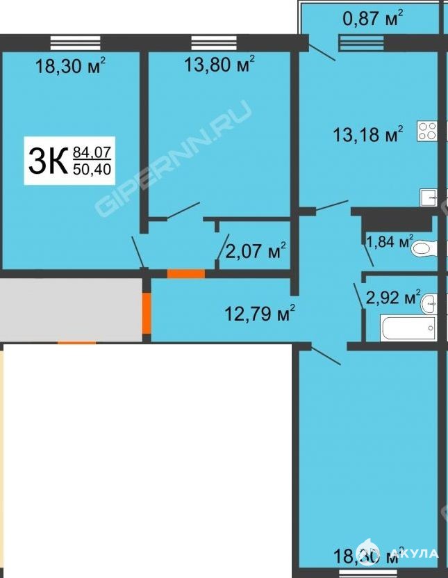 Продаётся 3 комн. квартира на ул. Бурнаковской, д. 117 площадью 83, 4/50/13, 1 кв.м., на 3 этаже 10-ти этажного дома.