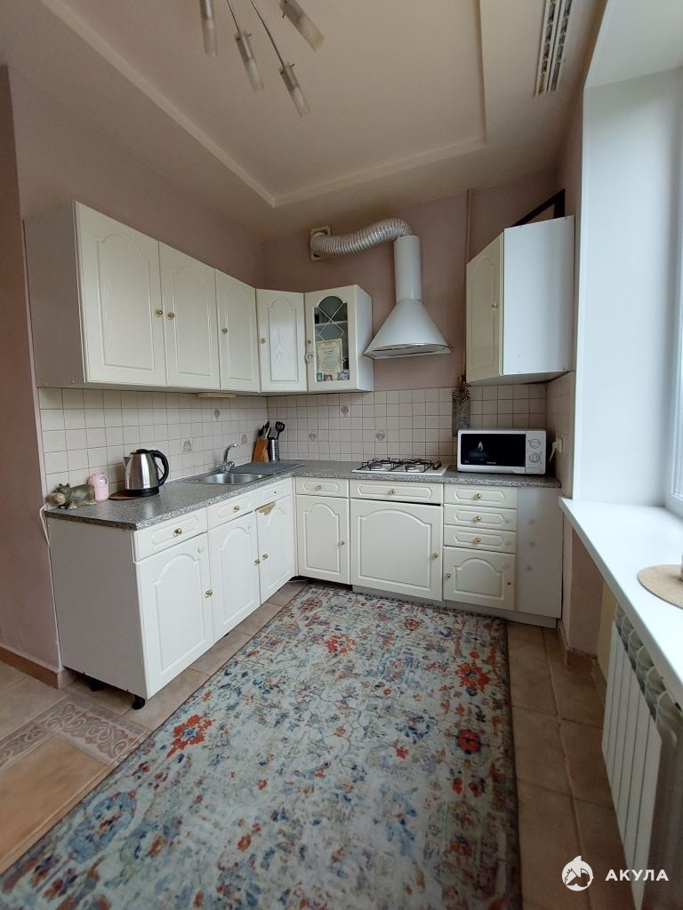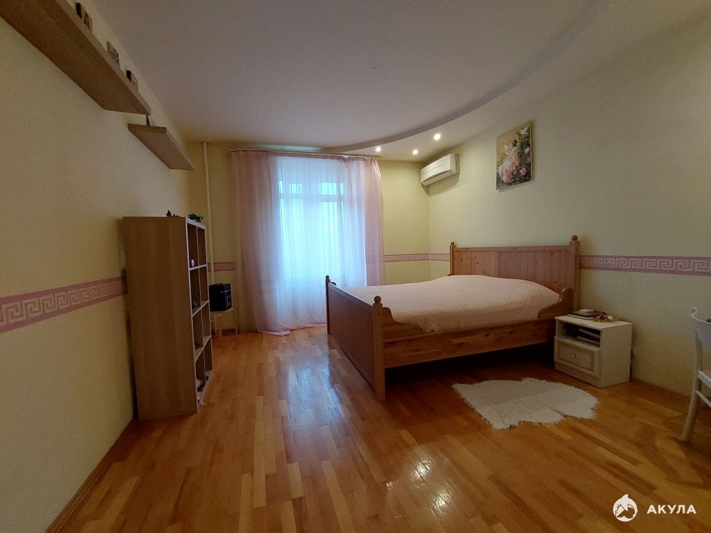 Квартира общей площадью 93, 3 кв.м., жилая площадь 58, 6 кв.м., комнаты изолированы на разные стороны, метраж комнат 17, 9 + 17, 8 + 22, 9 кв.м., площадь санузла 4, 1 кв.м. (совмещен), гардеробная 3, 4 кв.м., а также два просторных, утепленных и застекленных балкона. Высота потолков 3м. Окна выходят на юг и на север. Квартира не требует больших вложений, в ней был выполнен капитальный ремонт: на всех окнах ПВХ стеклопакеты, полы в комнатах - натуральный паркет, в прихожей и кухне керамогранит Керама Марацци, кондиционер. Перепланировка узаконена! Очень хорошие соседи: интеллигентные, спокойные, доброжелательные.