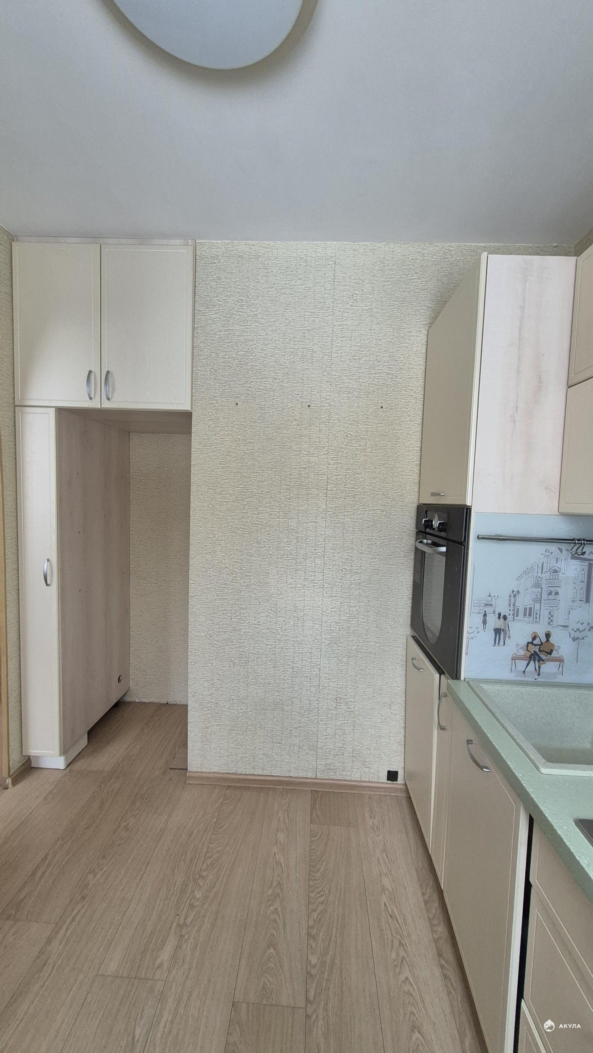 Уютная кухня, оснащенная импортной техникой (духовой шкаф, посудомоечная машина, новая колона). Кухонный гарнитур входит в стоимость квартиры.