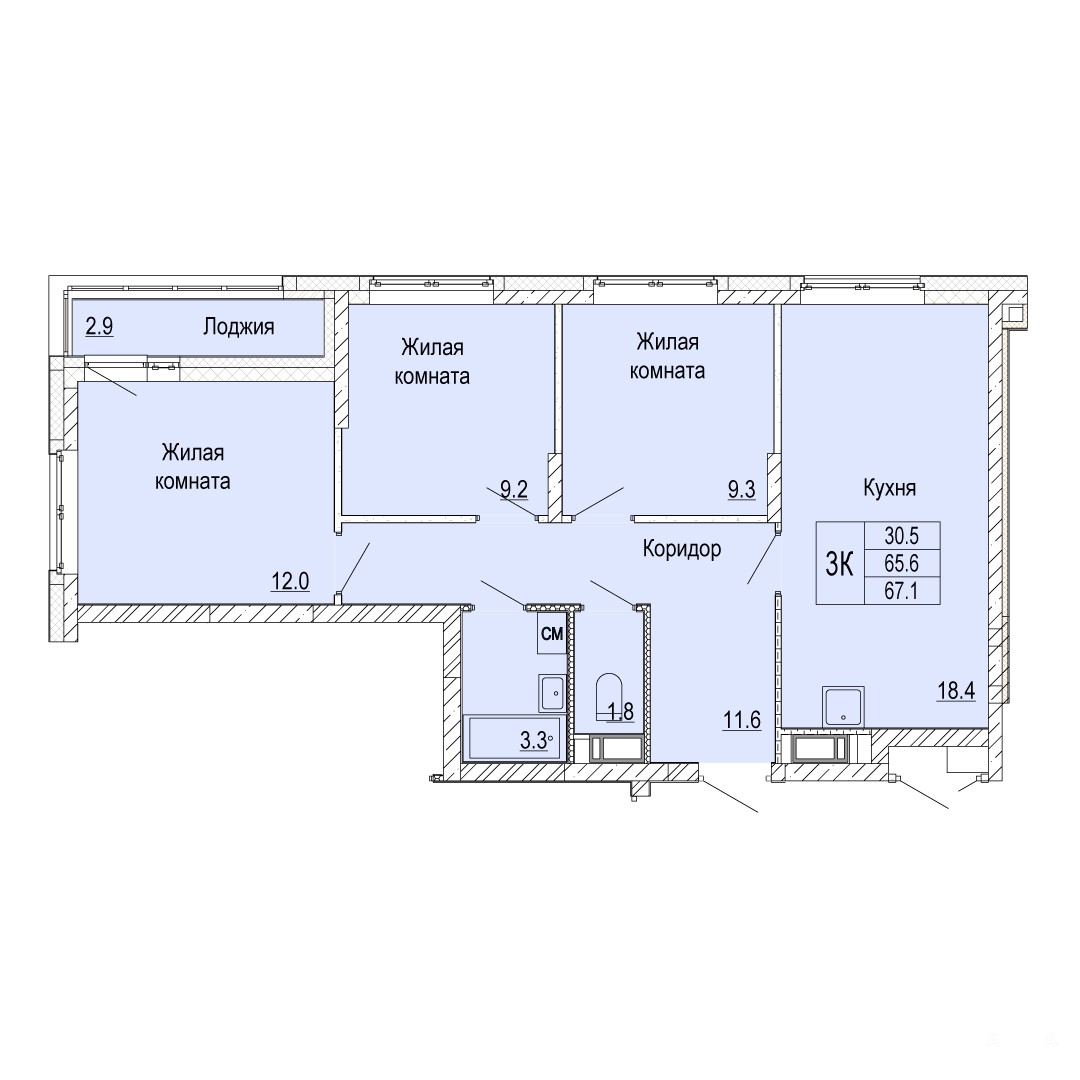 - 67 м²