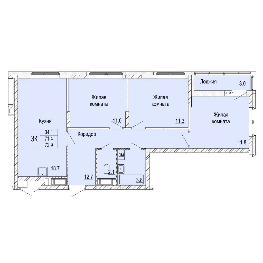 - 18.7 м²