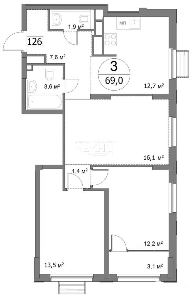 - 69 м²