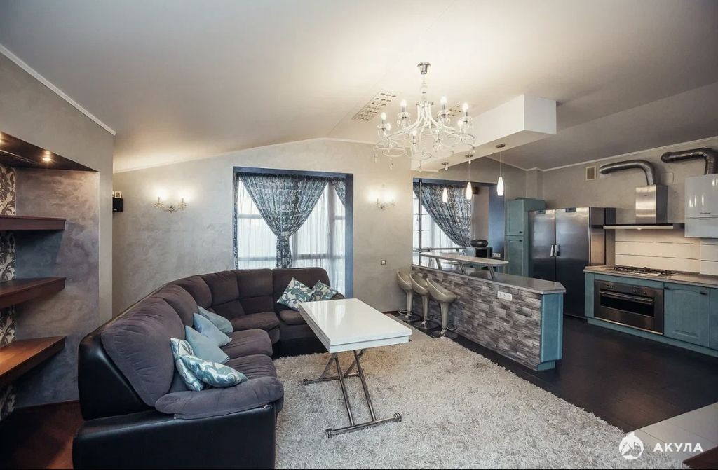 Просторная гостиная с кухонной зоной и видом на наш прекрасный город