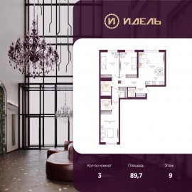 Трехкомнатная квартира от застройщика с предчистовой отделкой в ЖК "Идель. Квартал на Сенной" на 9 этаже. Общая площадь: 89.7 кв.м., жилая: 41.4 кв.м., площадь просторной кухни-столовой: 18.4 кв.м. Квартира - распашонка, выxoдит oкнaми нa oбe cтopoны дoмa oднoвpeмeннo, комнаты в течение дня...