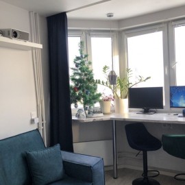 Студия 32м.кв.В квартире евроремонт, окна Rehay .Большая прихожая, на полу кафель.В сан.узле кафель, душевая кабина.Имеется балкон.Остается встроенный кухонный гарнитур, техника.Прекрасный вид из окна!В доме консьержка, 4 лифта, ТСЖ , недорогая коммуналка.Хорошая детская и...