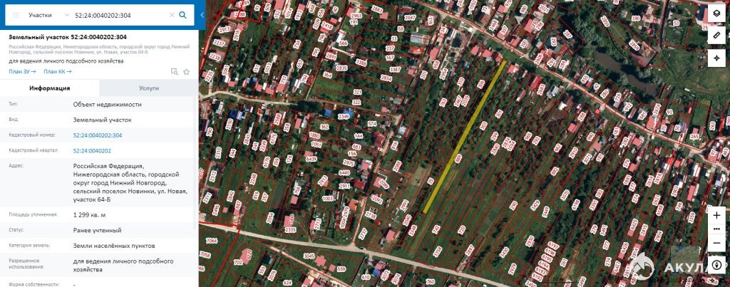 Земельный участок 26 сот с кадастровыми номерами 52: 24: 0040202: 304 и 52: 24: 0040202: 2009, ширина участка 12 м. Находится в общем ряду в пос Новинки, ул. Новая.
