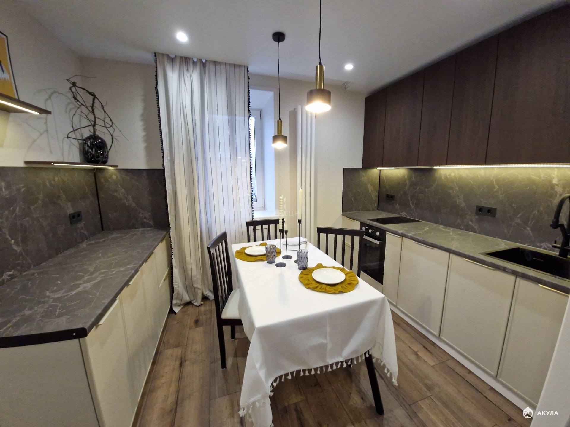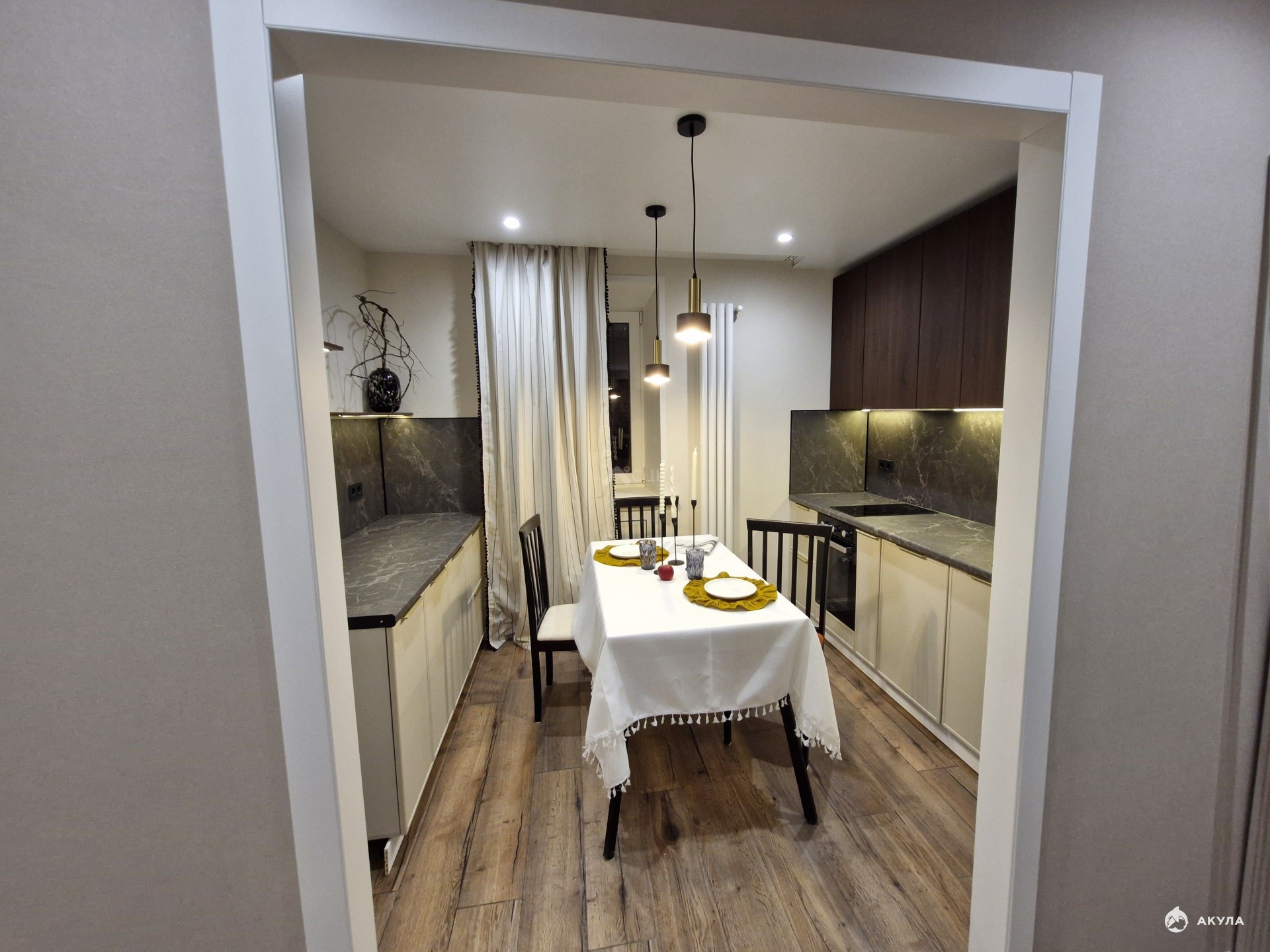 Квартира прошла полную реновацию с использованием качественных материалов и продуманным дизайном. Гармоничная цветовая гамма, включающая бежевые, серые и коричневые оттенки, создает уютную и расслабляющую атмосферу. Просторная кухня с двумя рабочими зонами и обеденной зоной станет идеальным местом для приготовления вкусных блюд и приема гостей. Большая лоджия, выкрашенная в теплый горчичный цвет, станет вашим любимым уголком для утреннего кофе или вечернего отдыха.
