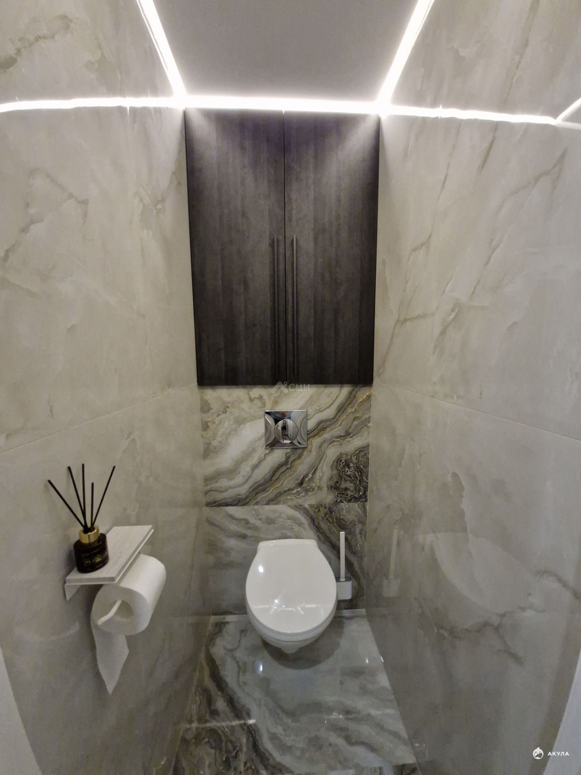 Ванная комната и туалет выполнены из высококачественной широкоформатной плитки, а установленная инсталляция и шкаф для хранения обеспечат дополнительное удобство. Во всей квартире смонтированы натяжные потолки со скрытыми нишами для штор, точечное и общее освещение, которое можно регулировать по вашему желанию.
