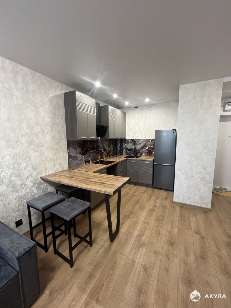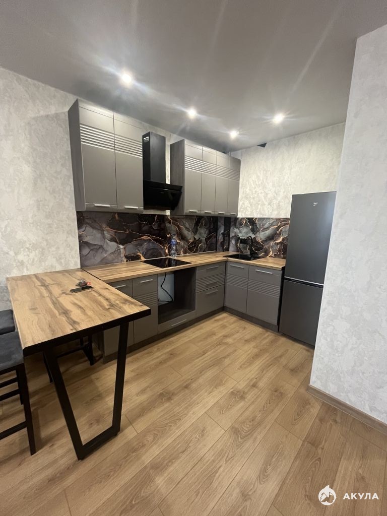Имеется все для комфортной жизни: кухонный гарнитур, диван, двухспальная кровать, шкаф, мебель в ванной, стиральная машина, варочная панель, духовой шкаф, холодильник, микроволновая печь, телевизор.