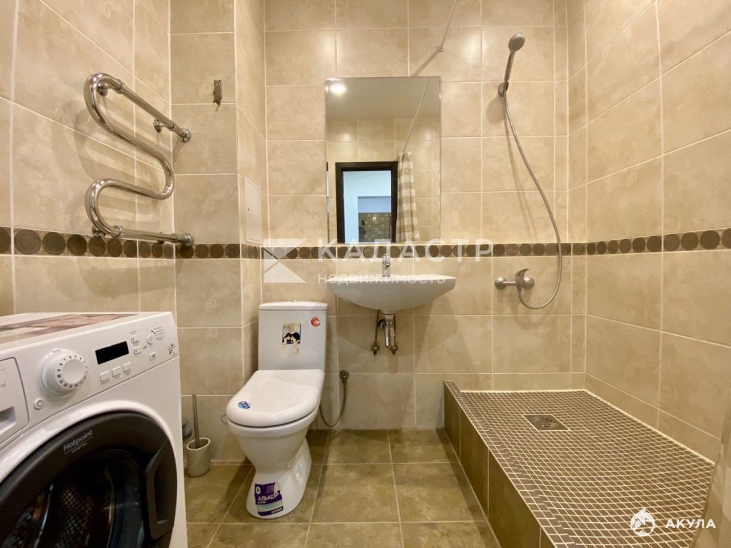 Совмещённый санузел. Ванная комната в кафеле, рабочая стиральная машина!
