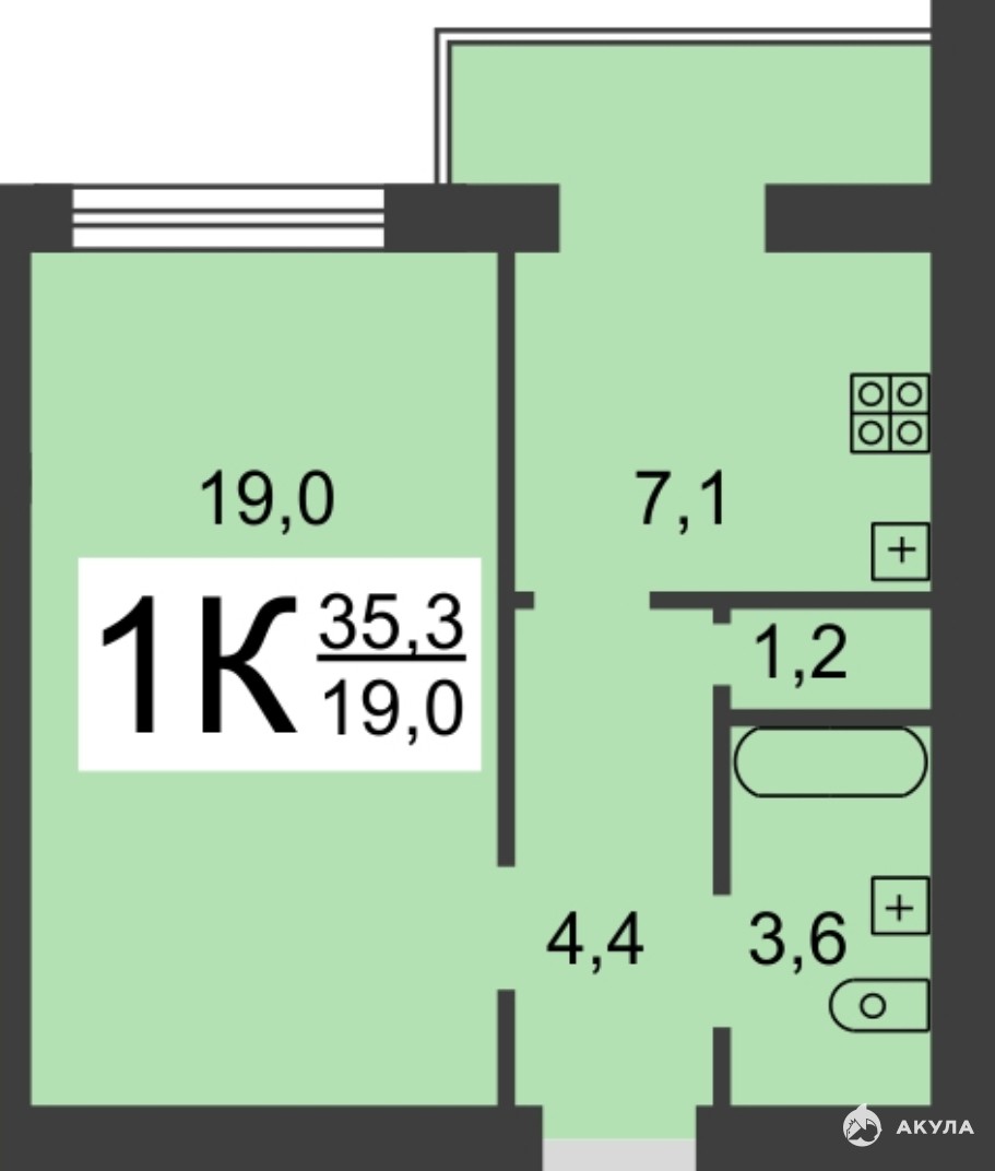 Арт. 89226873. 1-к. квартира, 35, 3 м², 2/12 эт.